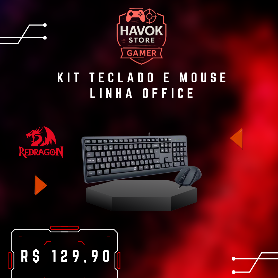 Em até 2x de R$ 69,95 sem juros À vistaR$ 129,90no Pix, Débito ou Dinheiro! O Kit Teclado e Mouse Redragon Office BS-7092 oferece layout ABNT2 completo, 14 teclas multimídia, mouse ambidestro com sensor de 1200 DPI, conexão USB plug-and-play e design resistente à derramamentos, tudo pensado para elevar sua produtividade hoje mesmo.