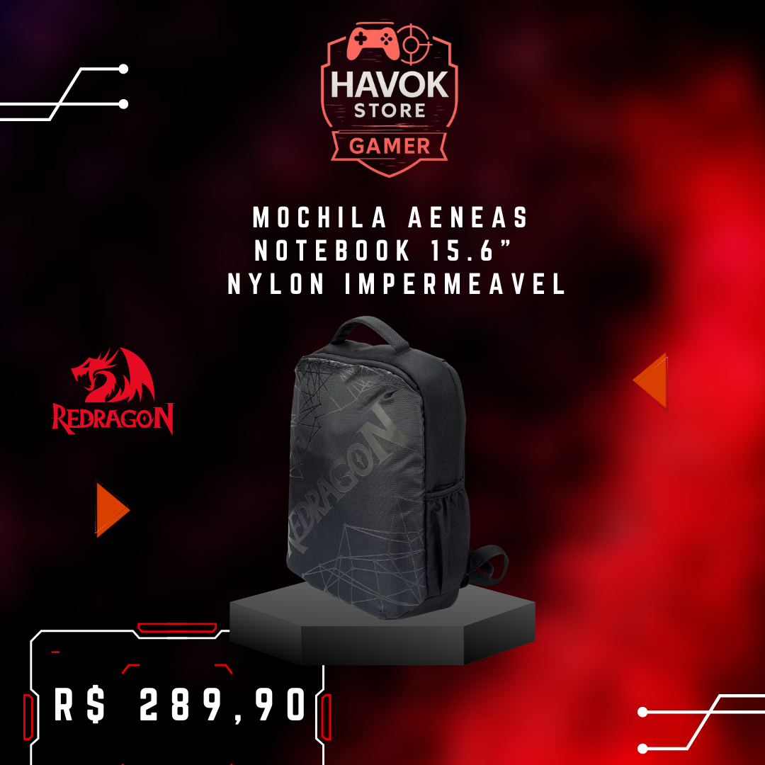 Em até 6x de R$ 53,32 sem juros À vistaR$ 289,90no Pix, Débito ou Dinheiro! A mochila Redragon Aeneas (15,6″) une nylon resistente à água, compartimento acolchoado para notebook até 15,6″ com cinto de segurança, bolsos múltiplos de fácil acesso e alças ergonômicas, ideal pra proteger e transportar seu setup com estilo hoje.
